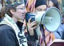 Jewish students speak at pro-Palestinian campus occupation on Monday. File photo: Andrew Goff.