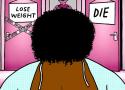Really consider how dehumanizing this image is and what messages it reinforces about fat rights. Consider how normalizing this messaging impacts the ways we treat fat people, the ways we treat them in workplaces, in doctors offices and on the street. I want you to hear my breath catch in my throat as I am forced into telling you